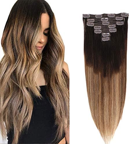 Dark Brown Ombre Hair Extensions : Vesunny 7pcs 120g Ombre Clip In Hair Extensions Color 3 Dark Brown Fading To 8a Mix 18b Ash Blonde Clip In Ombre Hair Extensions Remy Human Hair Full Head 18 Buy Online At